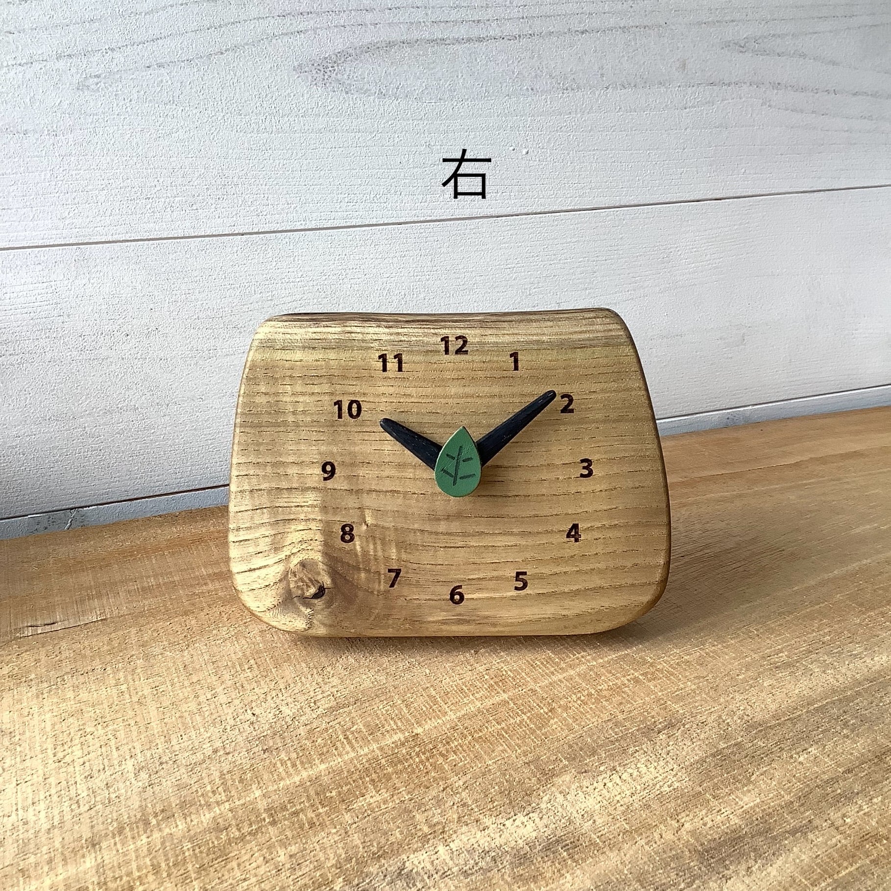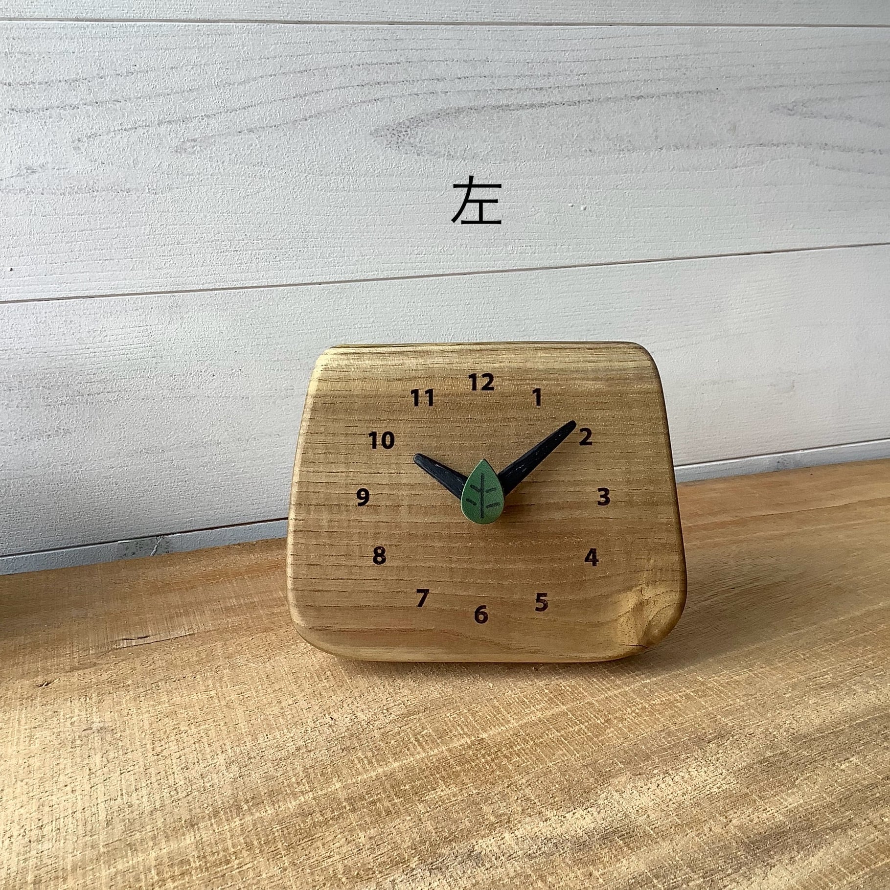 葉っぱの形の秒針がチョコチョコ愛らく動きます。音はムーブメントに直接耳をつけると聞こえる程度です。