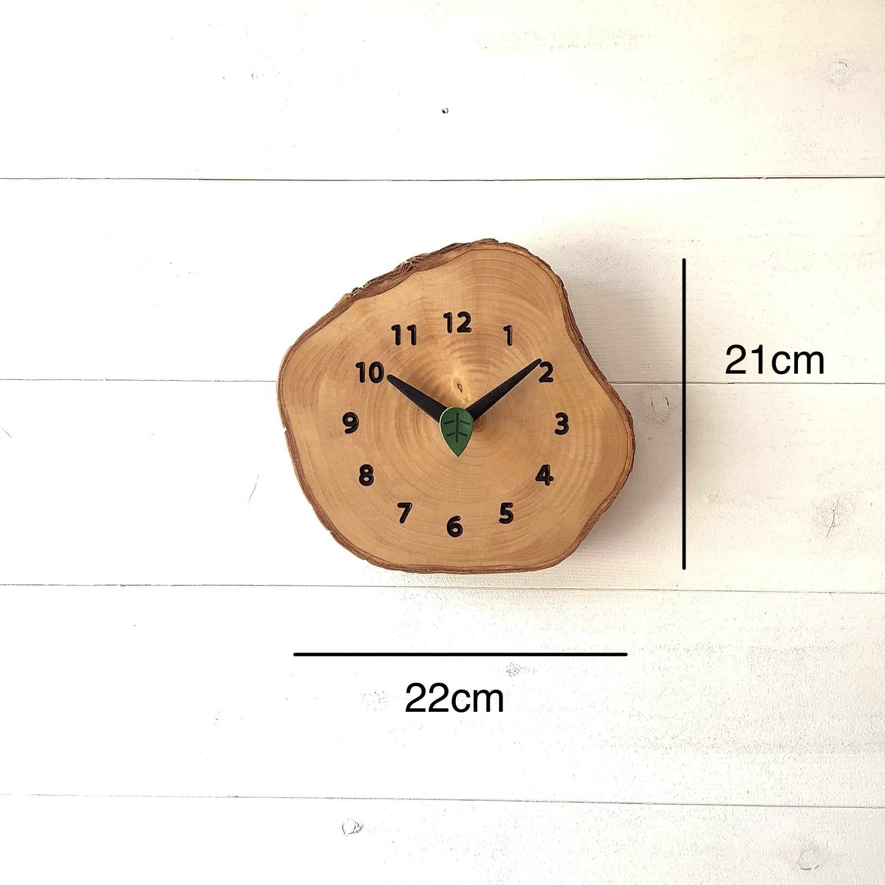 木そのもののデザインを出来るだけ損なわないように制作。時計は全て1点モノとなります。