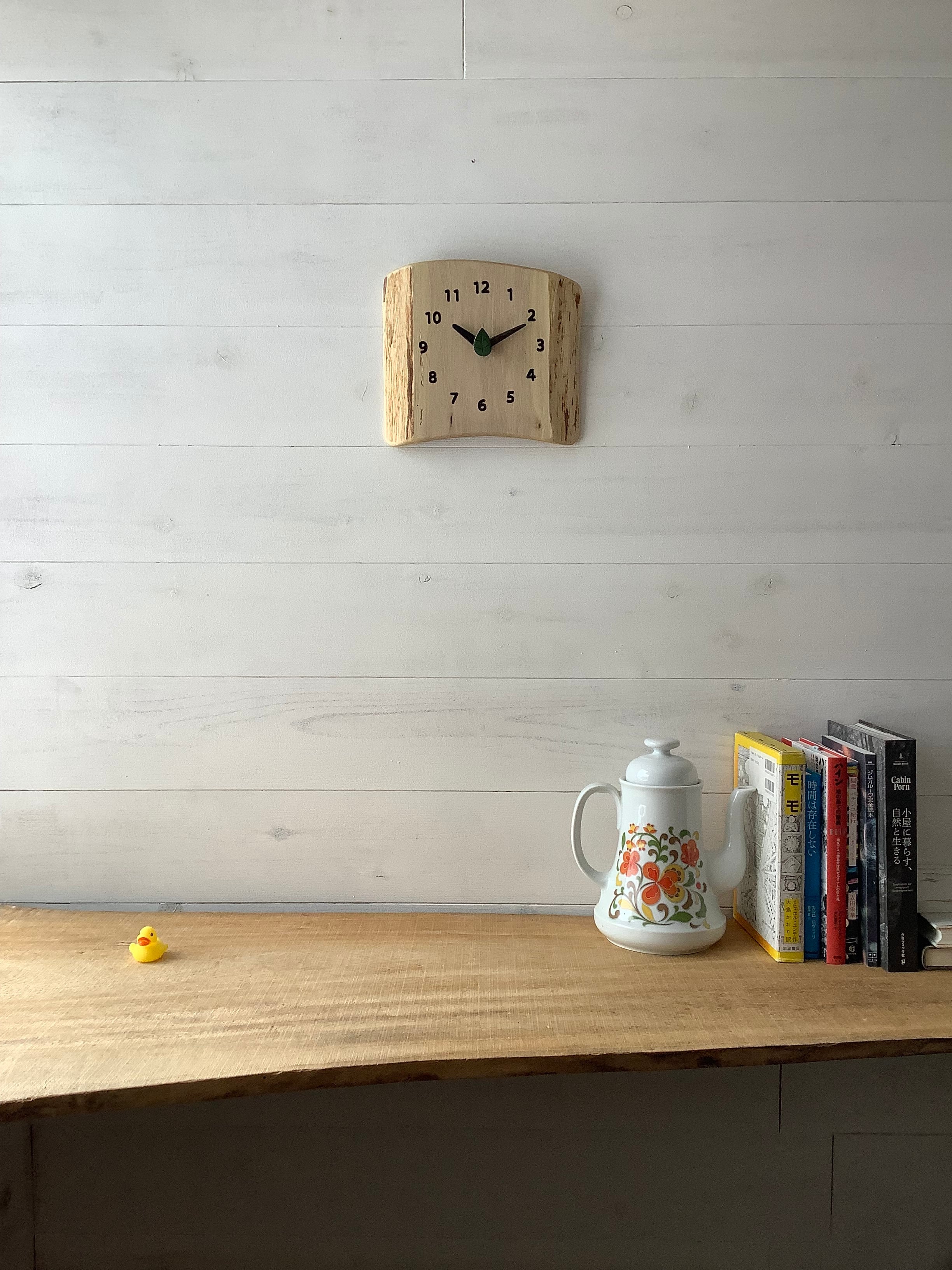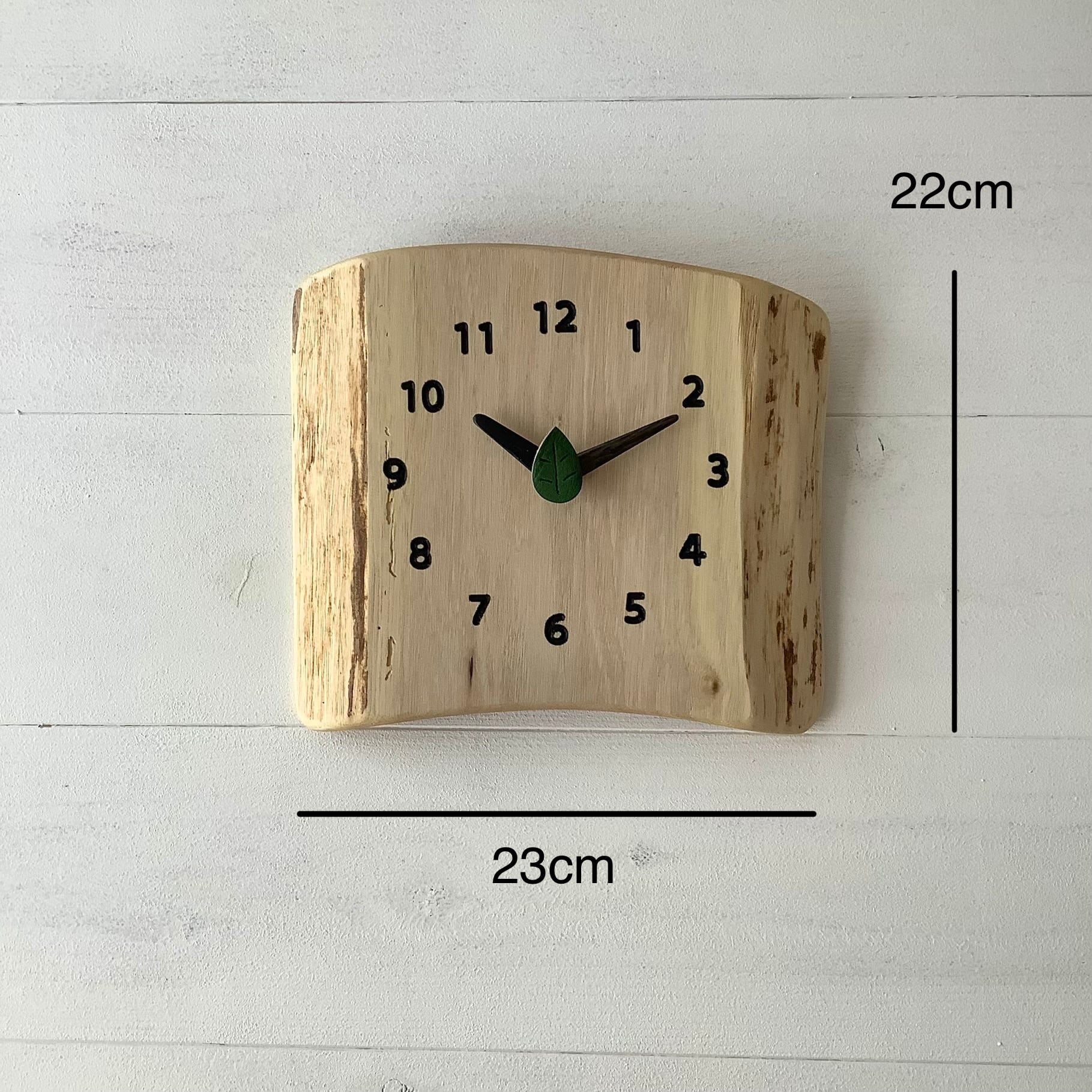 木そのもののデザインを出来るだけ損なわないように制作。時計は全て1点モノとなります。