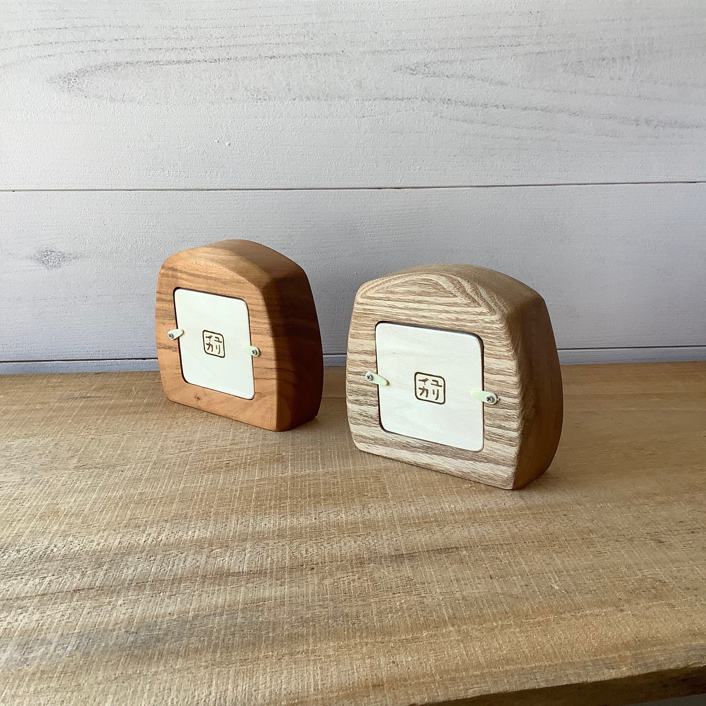 ちょこっと置きやすいサイズ。裏蓋の中にムーブメントが収まっています。