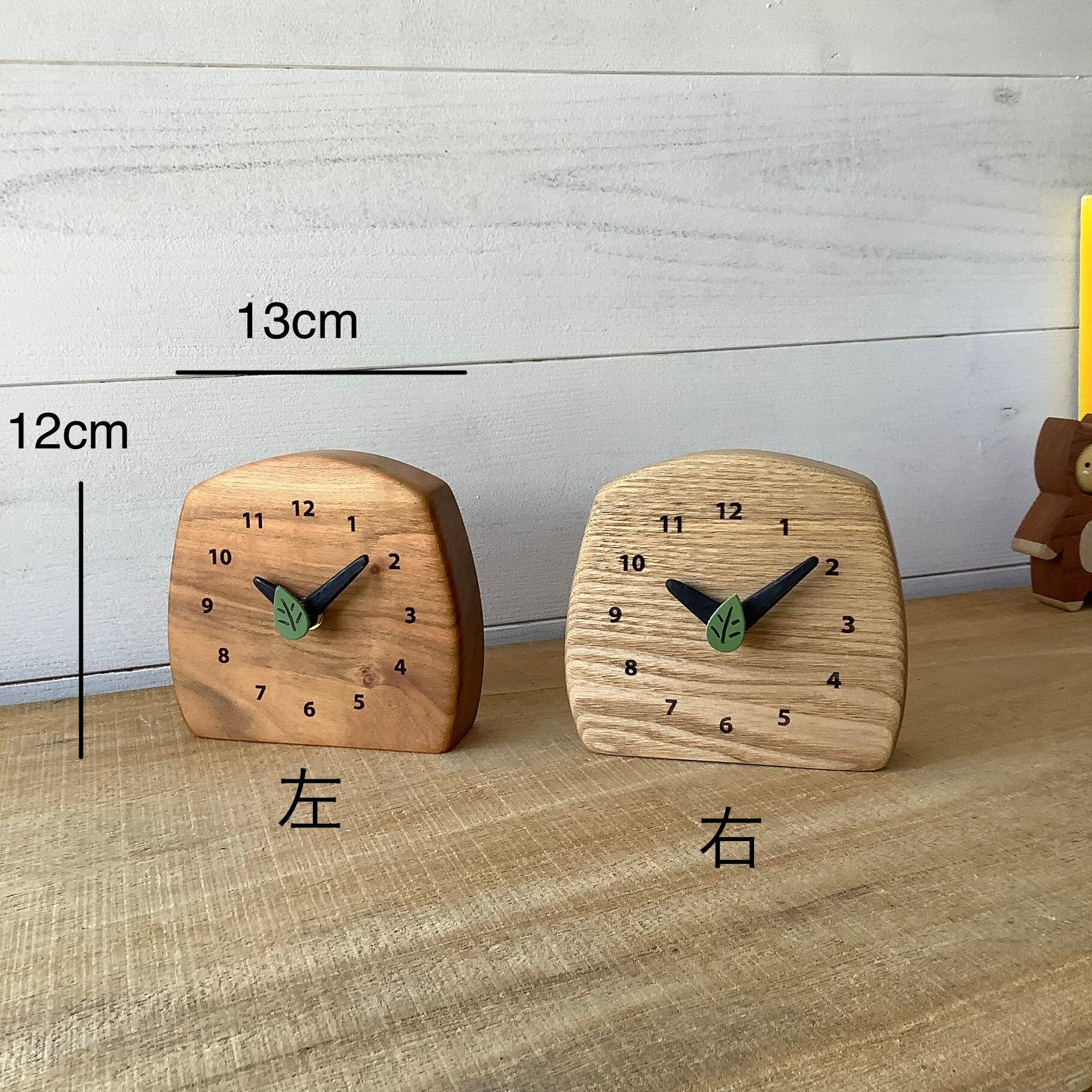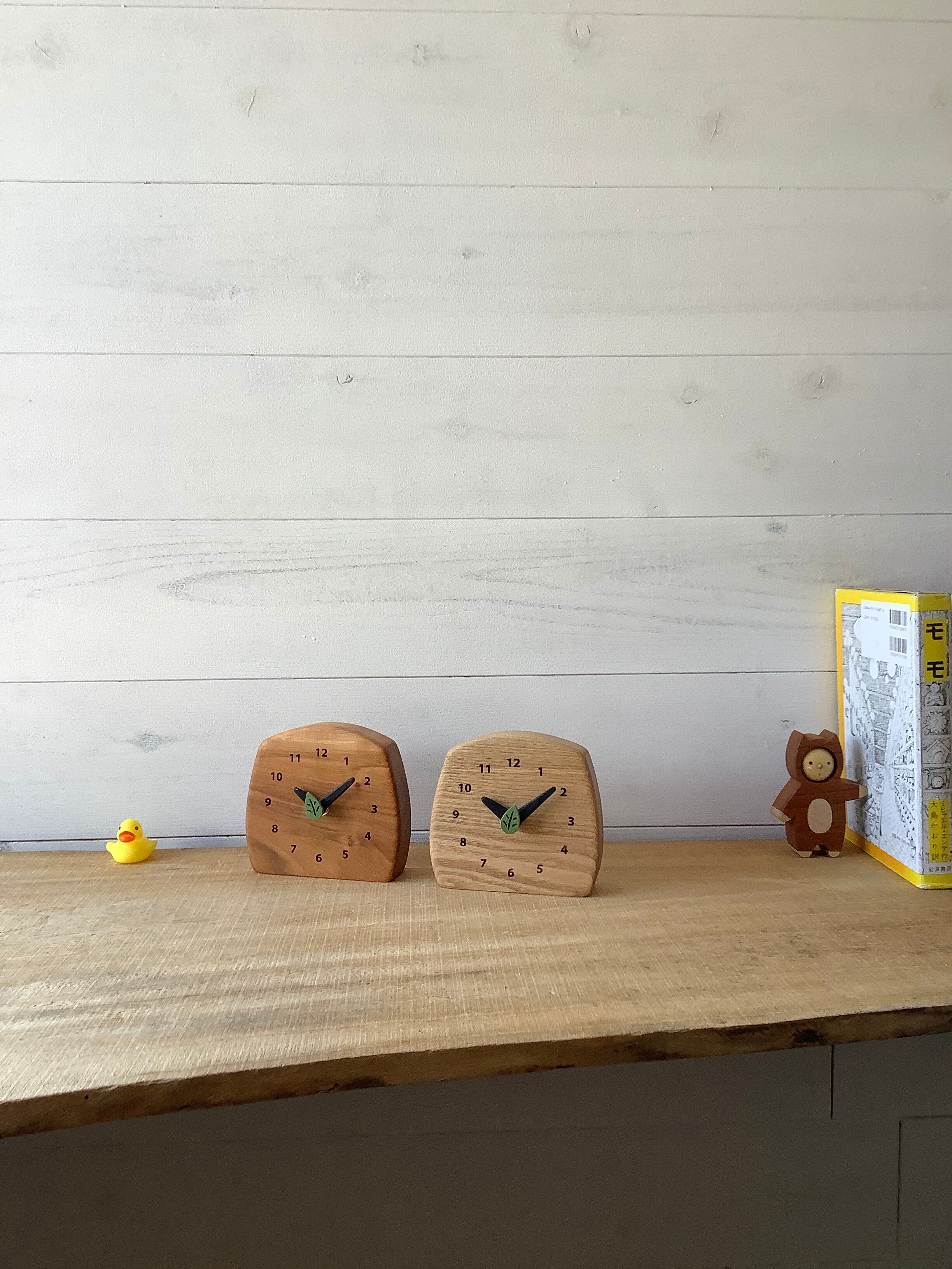 葉っぱの形の秒針がチョコチョコ愛らしく動きます。