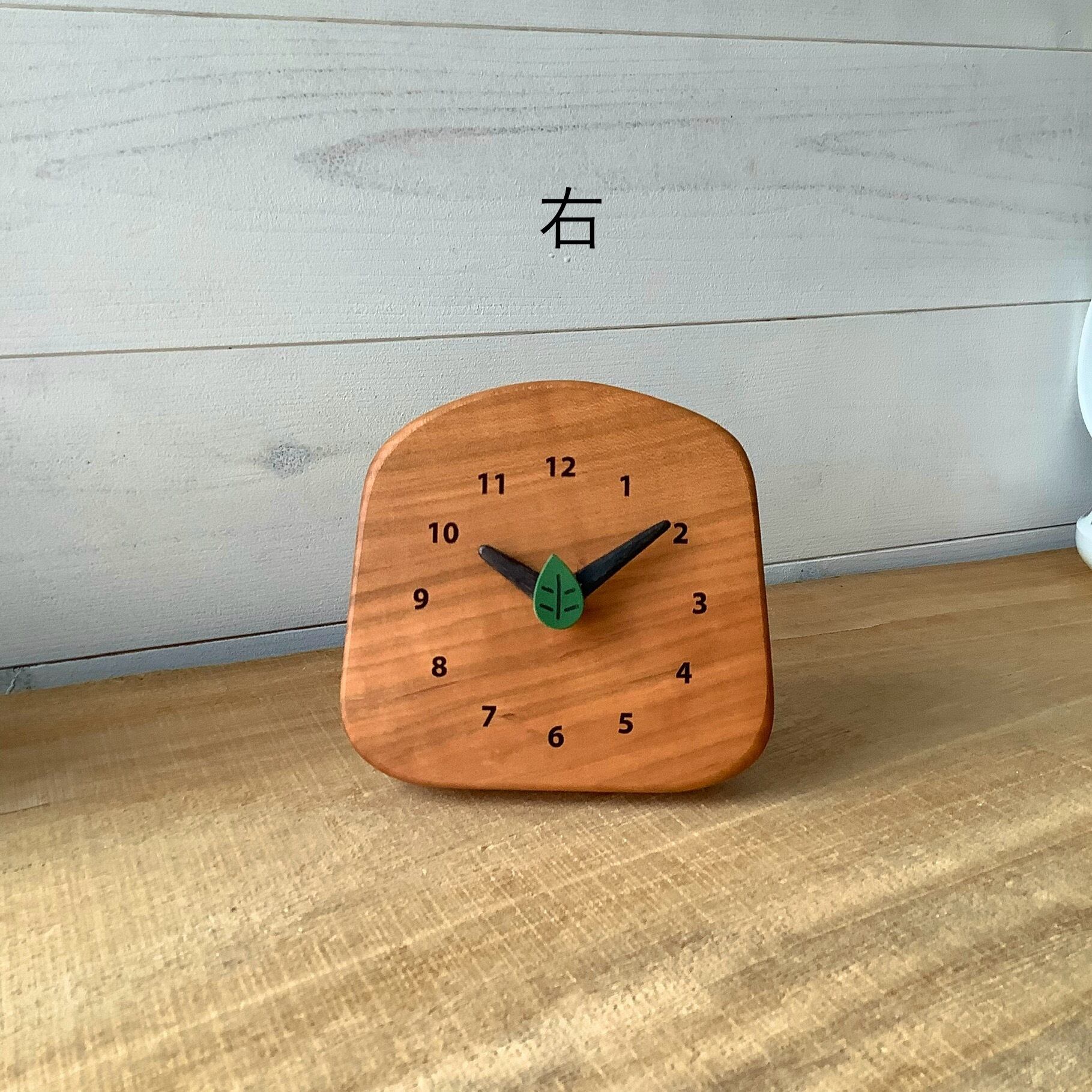 葉っぱの形の秒針がチョコチョコ愛らしく動きます。音はムーブメントに直接耳をつけると聞こえる程度です。