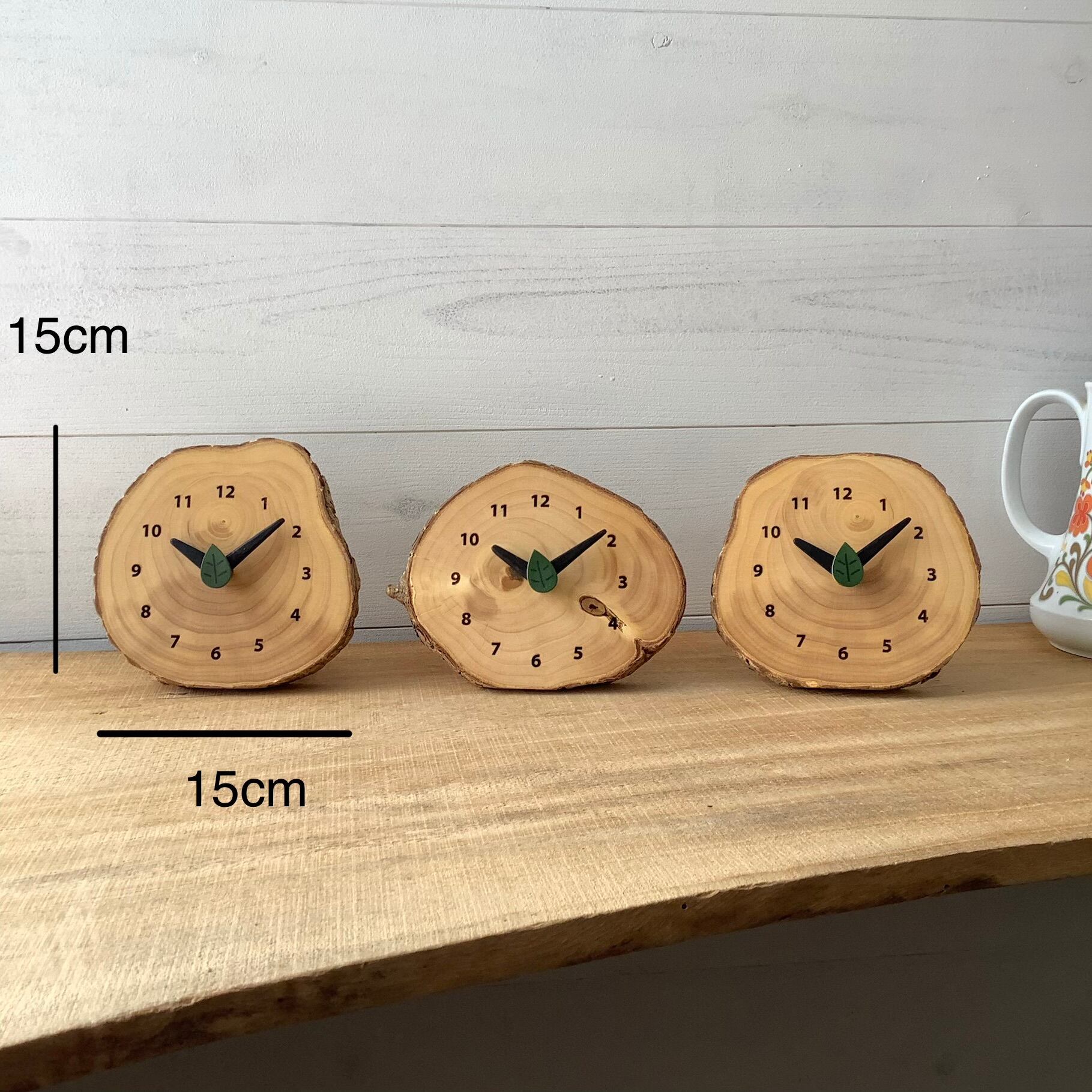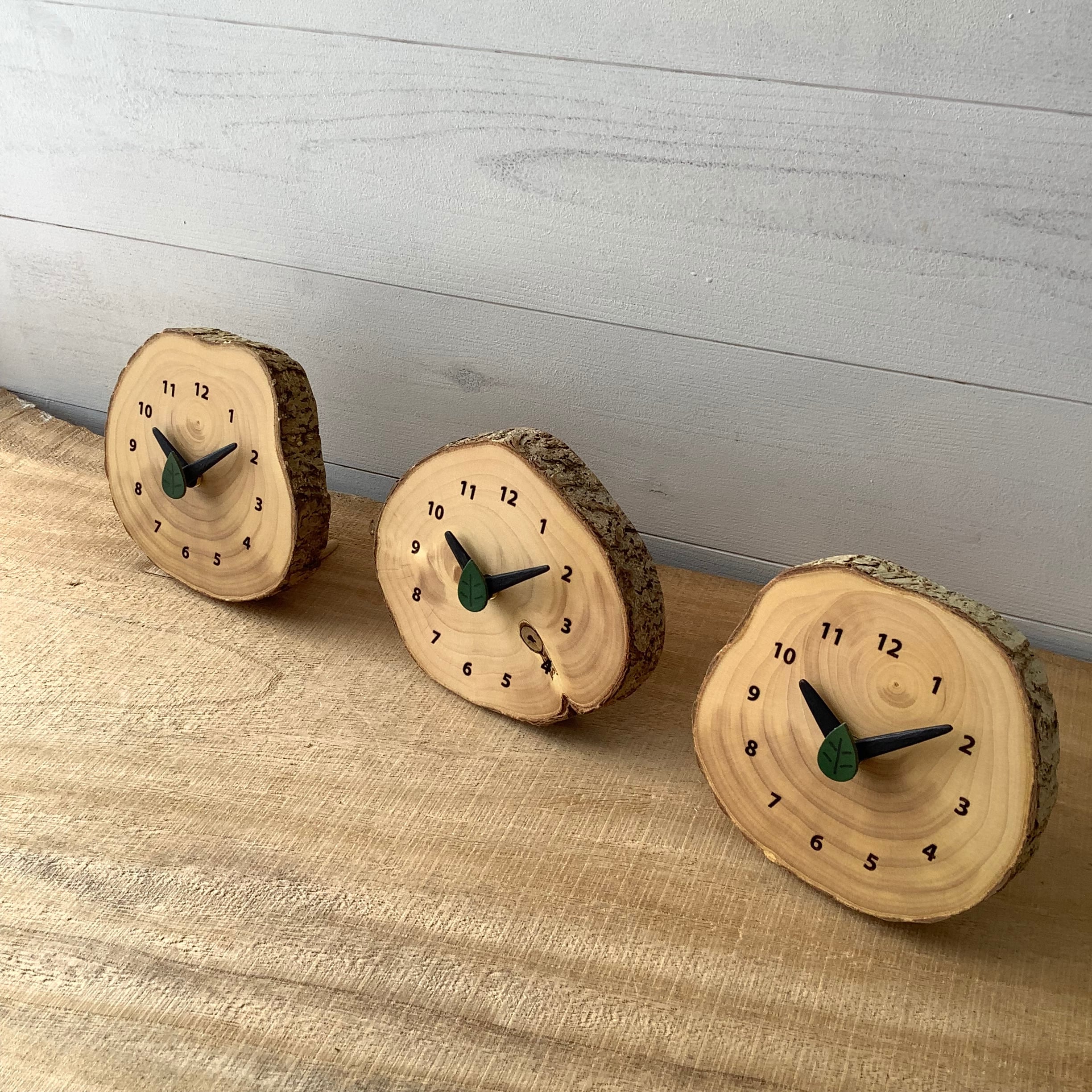 葉っぱの形の秒針がチョコチョコ愛らしく動きます。